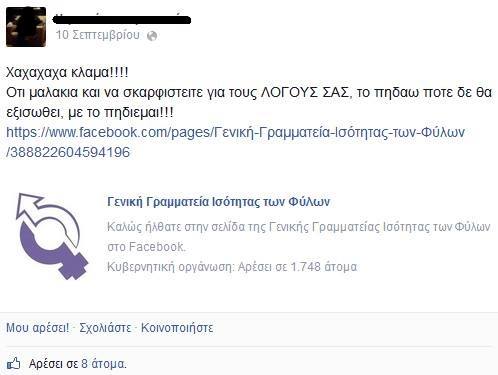 Εδώ έχουμε μικρό αλλά αντιπροσωπευτικό δείγμα μισογύνηδων που δεν συνειδητοποιούν πώς το «πηδάω» και το «πηδιέμαι» ειναι κοινωνικές κατασκευές και οχι καποια βιολογική πραγματικότητα οπότε είναι καταδικασμένοι για πάντα να κάνουν σεξ με γυναίκες που αυτόματα υποτιμούν γι ακριβώς αυτόν τον λόγο. Θλιβερό.