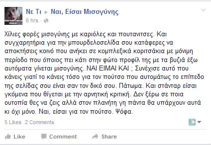 Το τέλος του σεξισμού δε θα έρθει με την επίθεση ενάντια σε όσες γυναίκες δε σου μοιάζουν σε ένα zero sum game, ούτε θα έρθει με την απόρριψη κάθε τι γυναικείου. Το τέλος του σεξισμού θα έρθει με την απελευθέρωση από τις πατριαρχικές δομές που θεωρούν τις γυναίκες, αλλά και ό,τι ταυτίζεται μαζί τους, εγγενώς κατώτερα.