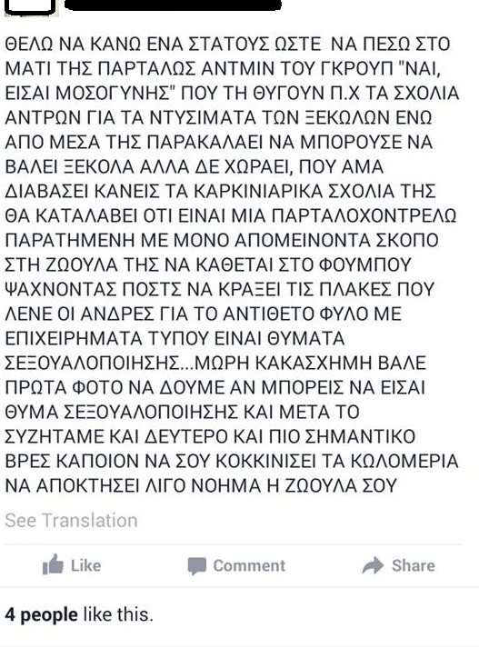 Αναδημοσιεύω αυτό το ειρωνικό «ποίημα», αφιερωμένο σε όσος μιλάνε για αντίστροφους ρατσισμούς, σεξισμούς και δεν συμμαζεύεται και σε όλους τους «μα δεν είμαι μισογύνης» και τους «εγώ, ρατσιστής?!» Ναι, είσαι ρατσιστής. Και μισογύνης. Και ομοφοβικός.