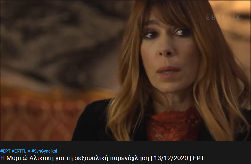 Η ηθοποιός δυστυχώς φαίνεται να αγκαλιάζει και το κλασικό πατριαρχικό gaslighting σύμφωνα με το οποίο οι γυναικες τάχα νιώθουν απειλή απλά και μόνο επειδή ένας άντρας τις κοιτάει, βγάζοντας τρελές χιλιάδες γυναίκες που έχουν βάσιμους λόγους να νιώθουν απειλή ή που αγανακτούν με τα γλοιώδη, χυδαία και επίμονα κοιτάγματα -χωρίς καμία να έχει φτάσει στα δικαστήρια για ένα απλό κοίταγμα όπως φαίνεται η Κα Αλικάκη να ανησυχέι λέγοντας οτι διαφωνεί «με την αμερικανική τάση να φτάνουν τα πάντα στο δικαστήριο». Ταυτόχρονα μιλάει για το «θάνατο του φλερτ» ακριβως επειδή από ολη αυτή την κουβέντα απουσιάζει η συναίνεση και η αμοιβαιότητα οι οποίες όταν αποτελούν αναπόσπαστα χαρακτηριστικά της προσπάθειας εξεύρεσης ερωτικών συτρόφων δεν υπάρχει φόβος να χαρακτηριστεί ως «παρενόχληση».