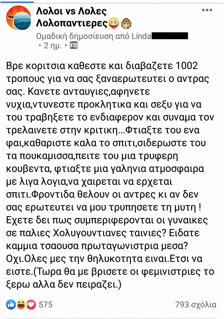 Κάθε γυναίκα που έχει αναγκαστεί κάποια στιγμή στη ζωή της να αποκρούσει την σεξουαλική προσέγγιση ενός άντρα, ακόμα και του συντρόφου της, δίνοντας μια δικαιολογία που θα προστατέψει τον εγωισμό του, έχει προς στιγμή βιώσει το σώμα της και την επιθυμία της ως κάτι που δεν της ανήκει, ως κάτι που χρωστάει σε κάποιον άλλον. Έχει δώσει προτεραιότητα στα συναισθήματα κάποιου άλλου αντί για τα δικά της και έχει αποφύγει να αναγνωρίσει το αναπόφευκτο γεγονός ότι δύο άτομα δεν γίνεται να ταυτίζονται 24/7 στις επιθυμίες τους αλλά για κάποιο (πατριαρχικό λόγο) είναι μόνο οι γυνάικες που θα πρέπει να απολογούνται γι αυτό. Κι αυτός δυστυχώς είναι ο τρόπος που πολλές γυναίκες στην πατριαρχία μαθαίνουν να βλέπουν το σεξ και είναι λίγο περίεργο που σπάνια μιλάμε για το πώς αυτό (και όχι η «Φύση» ή οι «ορμόνες») επηρεάζουν την λίμπιντό της και την τάση της να παίρνει πρωτοβουλίες που αφορούν τη σεξουαλικότητά της.