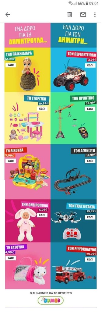 Πατριαρχία: Θα διδάξουμε τα κορίτσια από μωρά οτι αυτό που μπορούν να γίνον είναι παιχνιδιαρικα, στοργικά, ονειροπόλες «γατουλες» που ασχολούνται με το νοικοκυριό και το φαγητό και τα αγόρια ότι οφείλουν να γίνουν περιπετειώδη, πρακτικά, αγωνιστικά και ριψοκίνδυνα που σκαμπάζουν από τεχνολογία