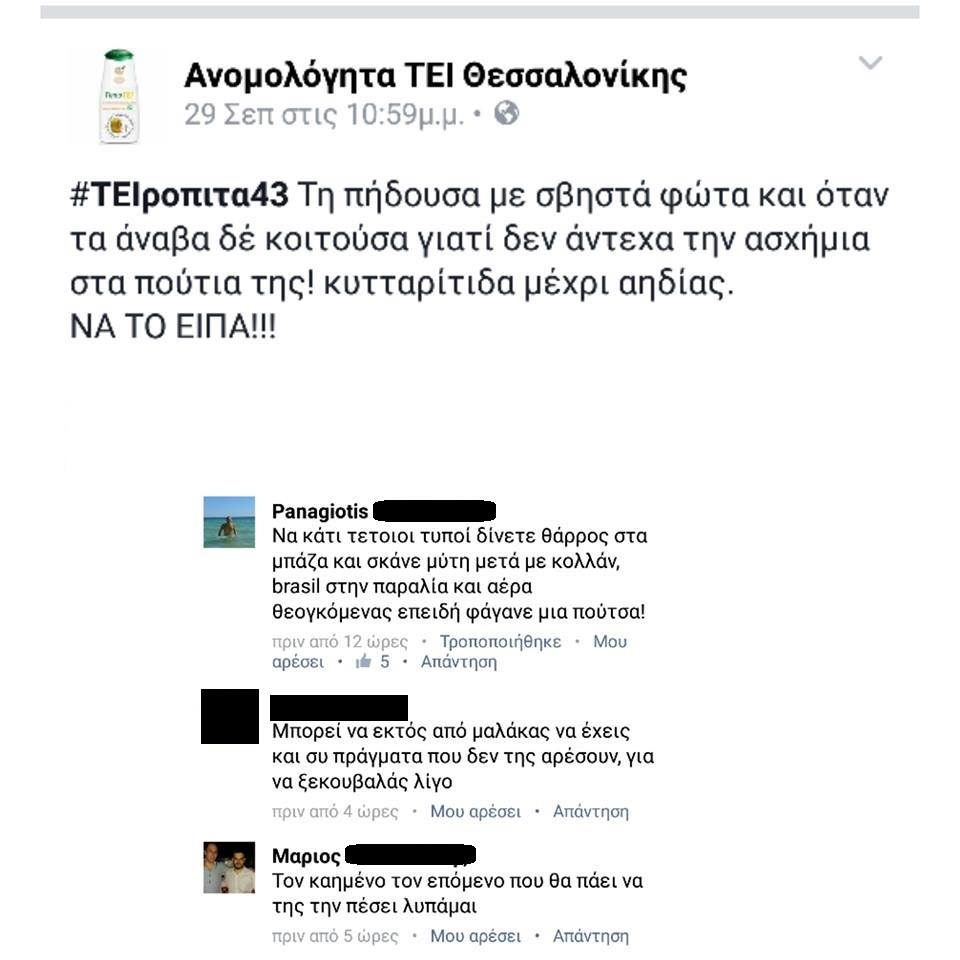 Συγκινητικό στιγμιότυπο από ετεροφυλόφιλο άντρα που εξομολογειται τις τραγικές στιγμές που υπέφερε στα χέρια μιας γυναίκας ενώ άλλοι άντρες του προσφέρουν την συμπαράστασή τους. Οχι, για να μη λέτε ότι οι λευκοί ετεροφυλοφιλοι άντρες δεν αντιμετωπίζουν συστημική καταπίεση. Εδώ συνάνθρωποί μας ζουν υπό την συνεχή απειλή ότι η γκόμενά τους μπορεί να έχει κυτταρίτιδα ή οτι θα δουν κανενα «μπάζο με κολάν», κι εσείς οι φεμινίστριες κάθεστε ακόμα και ασχολείστε με την απειλή του βιασμού και της έμφυλης βίας, το fat shaming και άλλα τέτοια φανταστικά προβλήματα;! Σταματήστε να κλείνετε τα μάτια στην αισθητική βία που αντιμετωπίζουν οι άντρες που επιλέγουν να κάνουν σεξ με γκόμενες που δήθεν τους πέφτουν λίγες, ΜΗΝ ΕΙΣΤΕ ΜΙΣΑΝΔΡΕΣ!