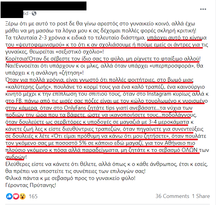 Αυτή ειναι η γνωστή κριτική «κριτικάρεις την κοινωνία και όμως συμμετέχεις σε αυτη ΧΑΧΑ Σ’ΕΠΙΑΣΑ CHECK-MATE!!!». Το να παρατηρείς ότι και οι φεμινιστριες συμμορφώνονται με τις πατριαρχικές επιταγές είναι σαν να παρατηρείς ότι και οι αντικαπιταλιστές έχουν facebook, δουλεύουν σε πολυεθνικές ή στις συνεντεύξεις με τα αφεντικά δεν μιλάνε για κατάργηση της ατομικής ιδιοκτησίας. Προφανώς αν ήταν τόσο εύκολο για όλ@ς να ζούμε εκτός πατριαρχίας ή καπιταλισμού δε θα το κάναμε θέμα. Το κάνουμε θέμα ΑΚΡΙΒΩΣ επειδή νιώθουμε στο πετσί μας την καθημερινή τους καταπίεση, ΑΚΡΙΒΩΣ επειδη αναγκαζόμαστε να ζούμε με τους κανόνες αυτούς, ΑΚΡΙΒΩΣ γιατί τα συστήματα αυτά έχουν κατακτήσει τόσες πτυχές της ζωής μας που συχνά φαντάζουν αναπόδραστα.