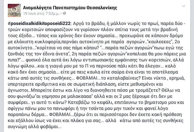 Πέρασε από το newsfeed μου ένα tweet που έγραφε: «η μεγαλύτερη ειρωνεία του catcalling είναι οτι οι γυναίκες θα φορούσαν λιγότερα αν οι άντρες δεν το έκαναν». Μου φάνηκε αστείο στην αρχή ώσπου αναλογίστηκα ότι κάνει ένα θεμελιώδες λάθος: υπονοεί ότι αυτό που θέλουν οι άντρες είναι κώλοι και βυζιά. Ότι δηλαδή, όπως μας λεέι η πατριαρχία, οι άντρες θέλουν ΣΕΞ!