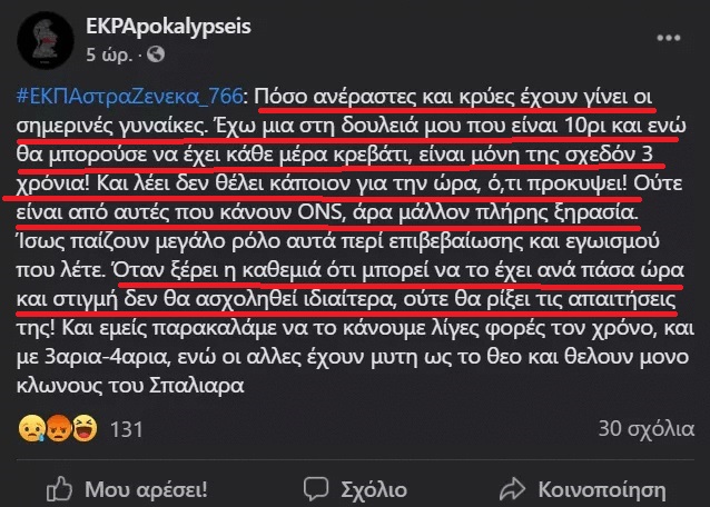 Το είδος αυτής της «εξομολόγησης» το βλέπουμε ξανά και ξανά και το κίνημα των incels παραμένει σε άνοδο. Η οργή τους συσσωρεύεται και γίνεται επικίνδυνη -συχνά δολοφονική. Πίσω από σχεδόν κάθε γυναικοκτονία κρύβεται η αδυναμία ενός άντρα να αποδεχτεί ότι μια γυναίκα ΑΠΛΑ ΔΕΝ ΤΟΝ ΓΟΥΣΤΑΡΕΙ (πια).